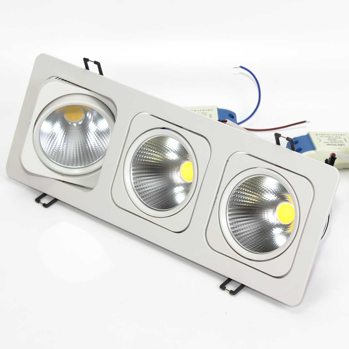 Светодиодный светильник. Квадратный белый корпус. Напряжение 100-265V, мощность 3х10W, цвет свечения дневной белый 4000-4500K, световой поток 3600Lm, угол свечения 60 градусов. Размер 330х120х70мм. Установочный размер 310х105мм.