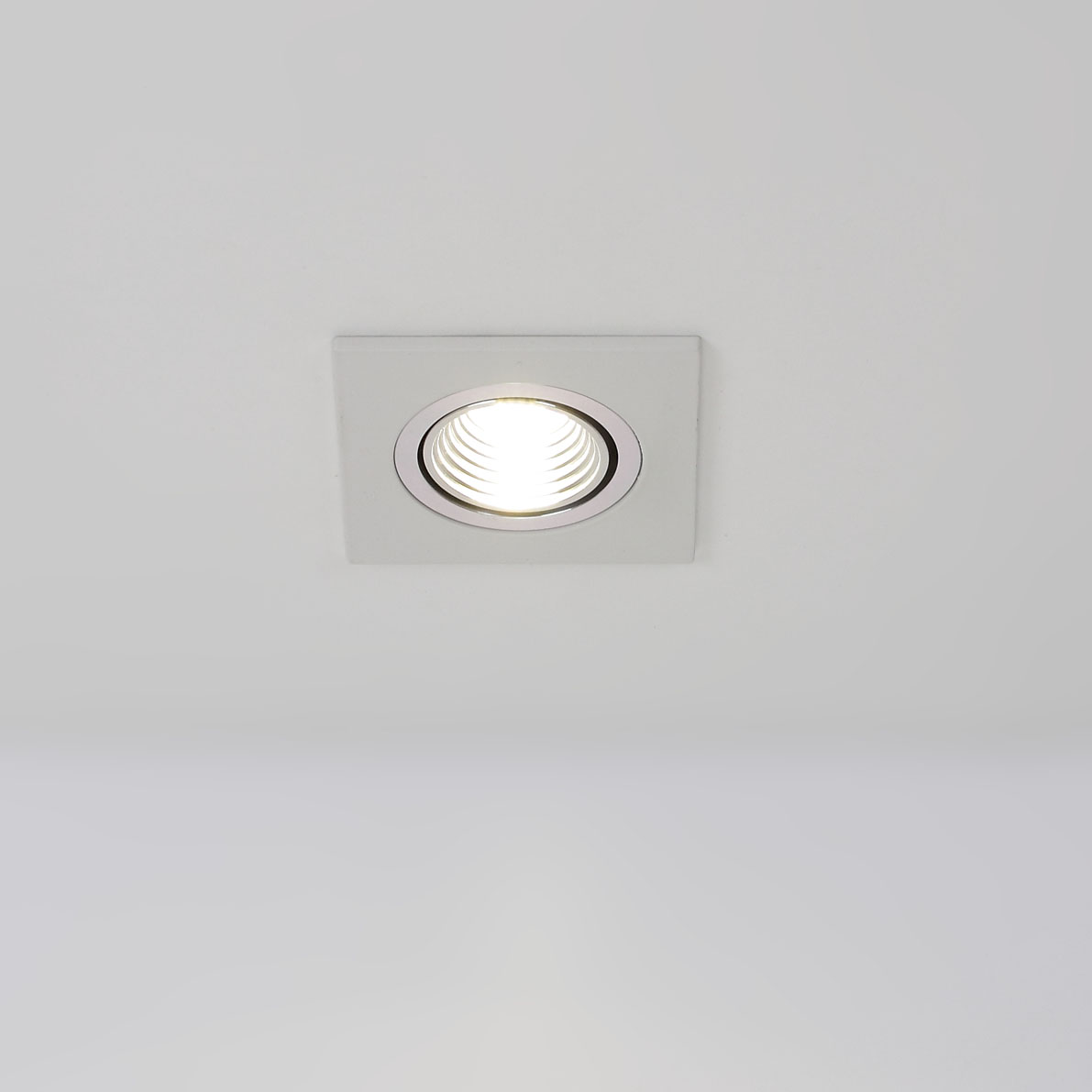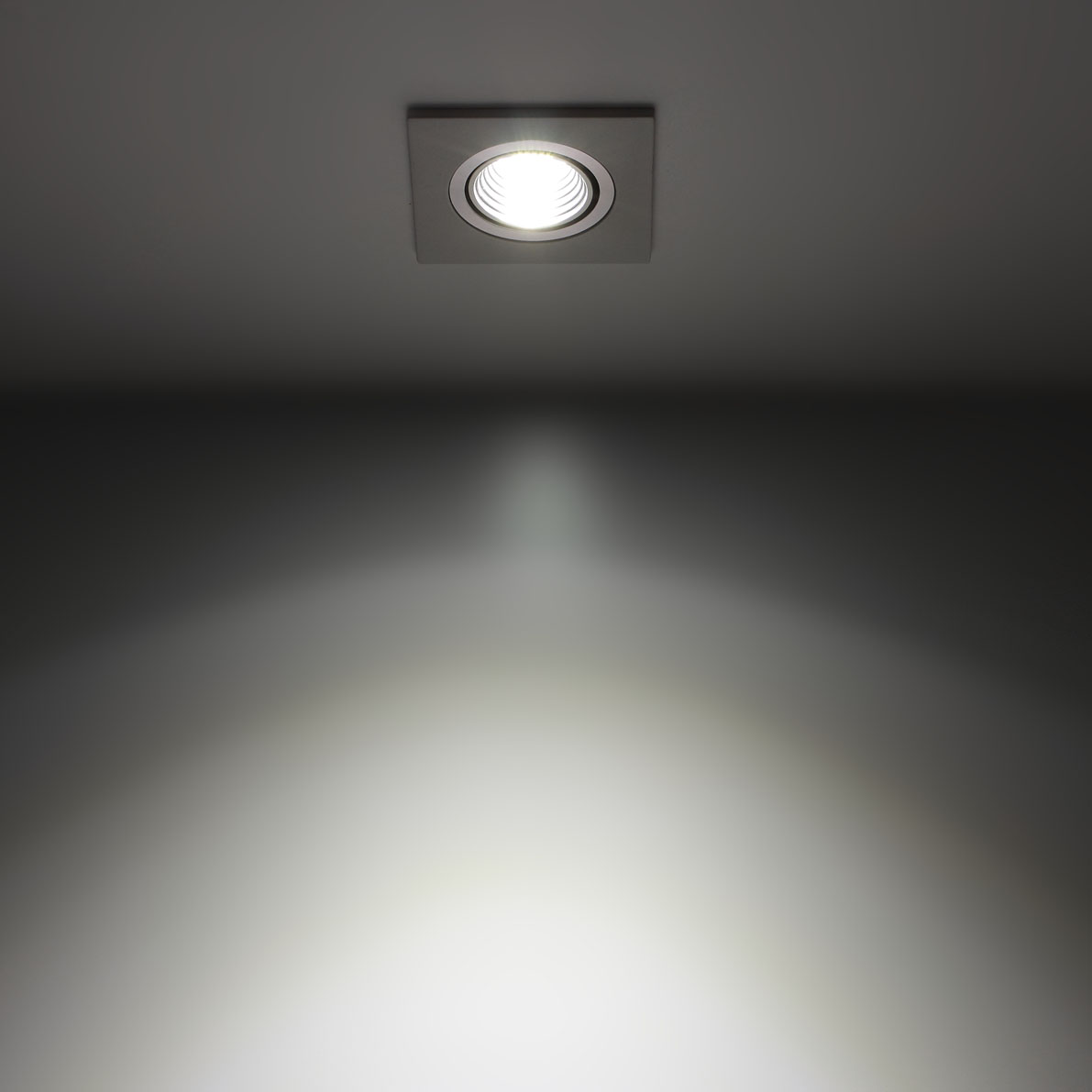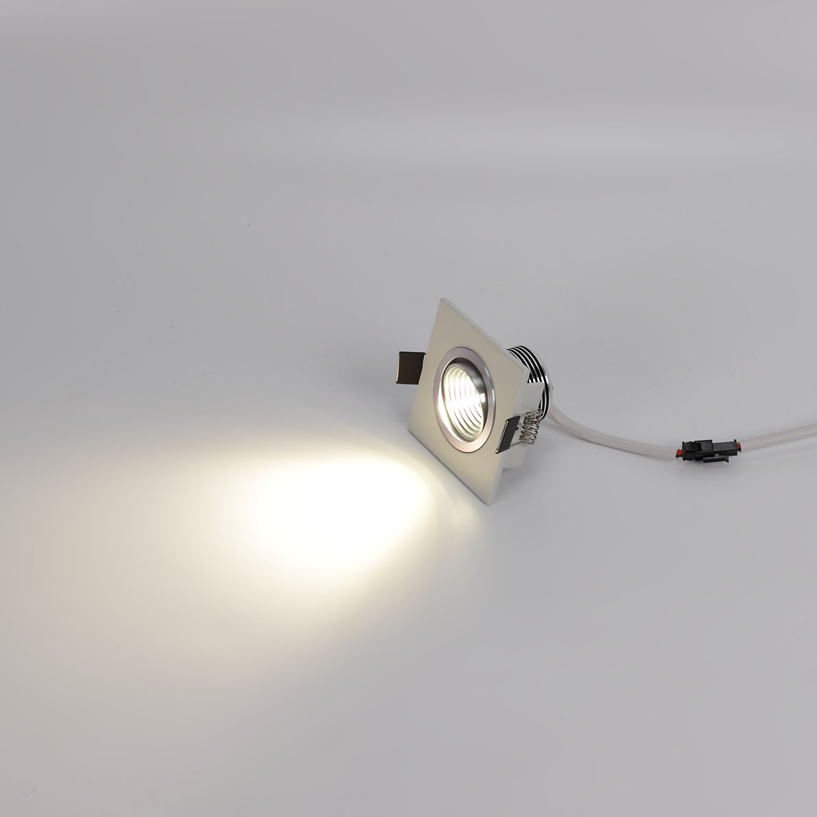 Светодиодный светильник. Квадратный белый корпус. Напряжение 220V, мощность 3W, цвет свечения дневной белый 4000-4500K, световой поток 360Lm, угол свечения 60 градусов. Размеры 65x65x45мм, установочные размеры 55x50мм.