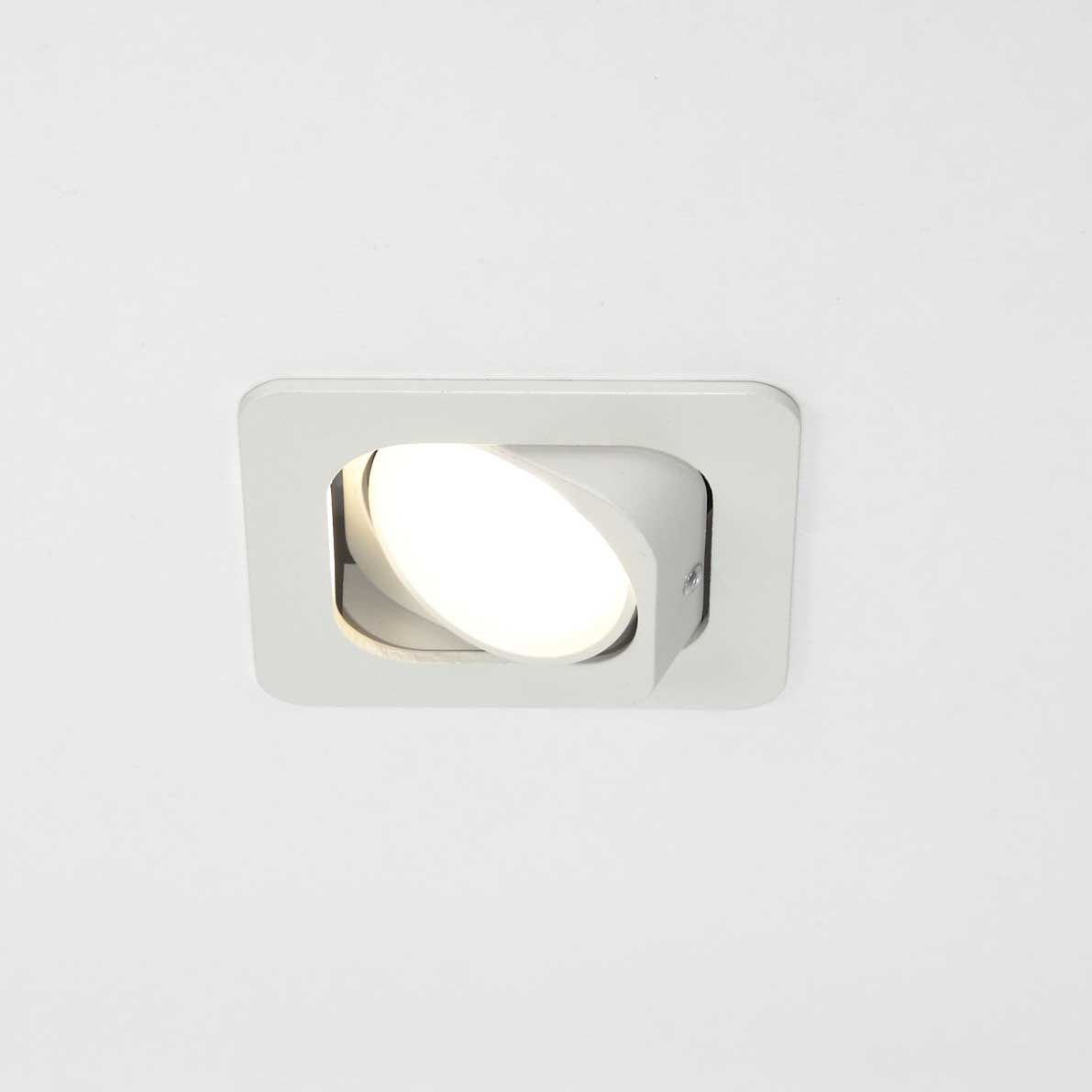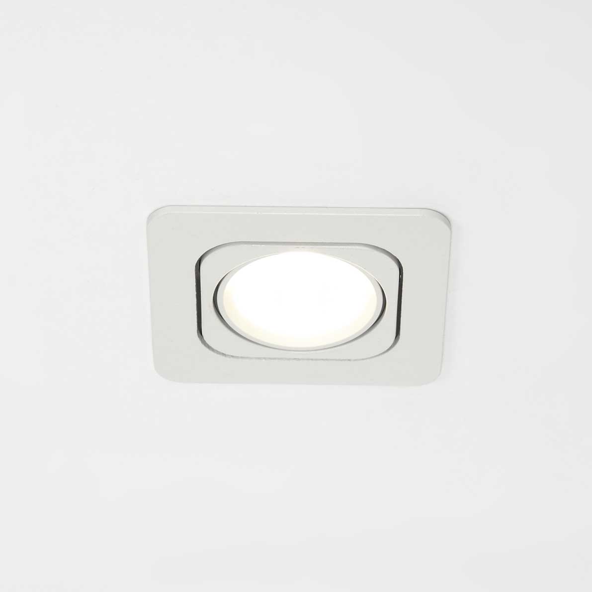 Светодиодный светильник. Квадратный белый корпус. Напряжение 100-265V, мощность 5W, цвет свечения дневной белый 4000-4500K, световой поток 600Lm, угол свечения 60 градусов. Размер 98х98х60мм. Установочный размер 80х75мм.