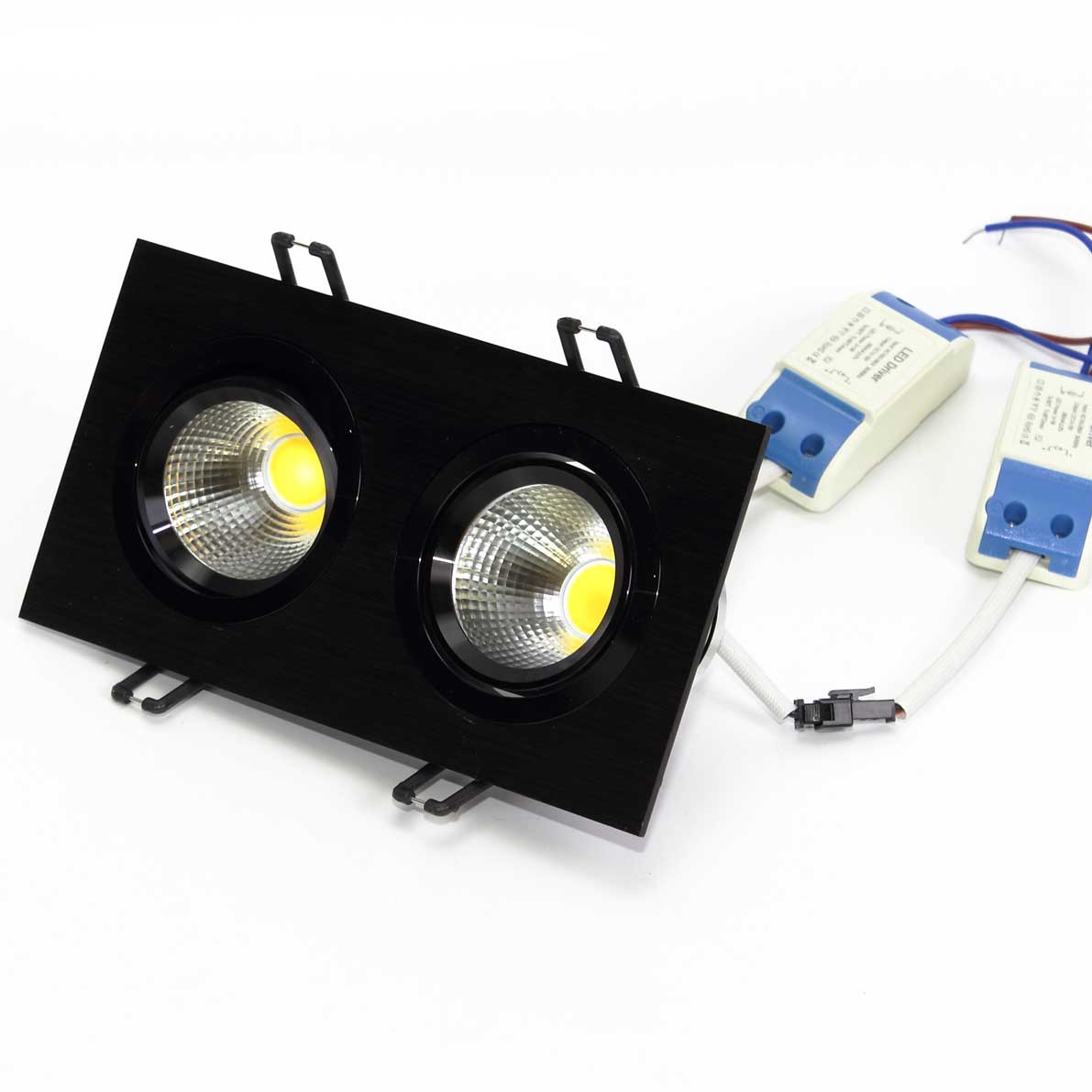 Светодиодный светильник. Квадратный черный корпус. Напряжение 100-265V, мощность 2х5W, цвет свечения дневной белый 4000-4500K, световой поток 1200Lm, угол свечения 60 градусов. Размер 183х99х60мм. Установочный размер 160х85мм.