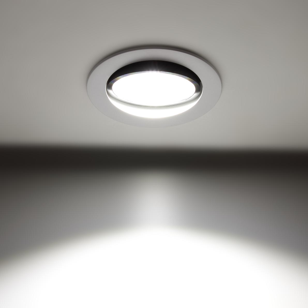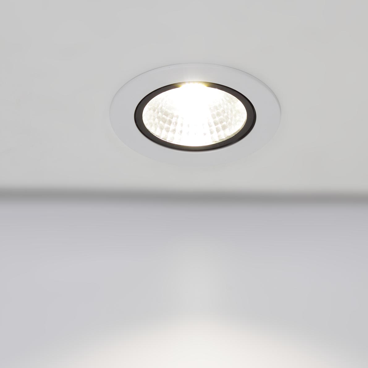 Потолочный поворотный светодиодный светильник. Круглый белый корпус. Диаметр 110мм (под отверстие 95мм). Напряжение 85-265V, мощность 10W, цвет свечения дневной белый 4000-4500K, световой поток 1000Lm, угол свечения 60 градусов.