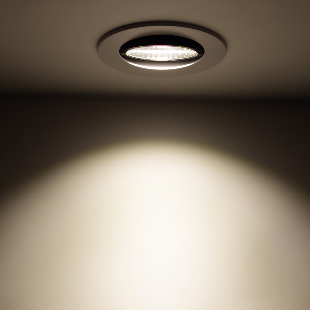 Потолочный поворотный светодиодный светильник. Круглый белый корпус. Диаметр 85мм (под отверстие 75мм). Напряжение 85-265V, мощность 7W, цвет свечения дневной белый 4000-4500K, световой поток 700Lm, угол свечения 60 градусов.