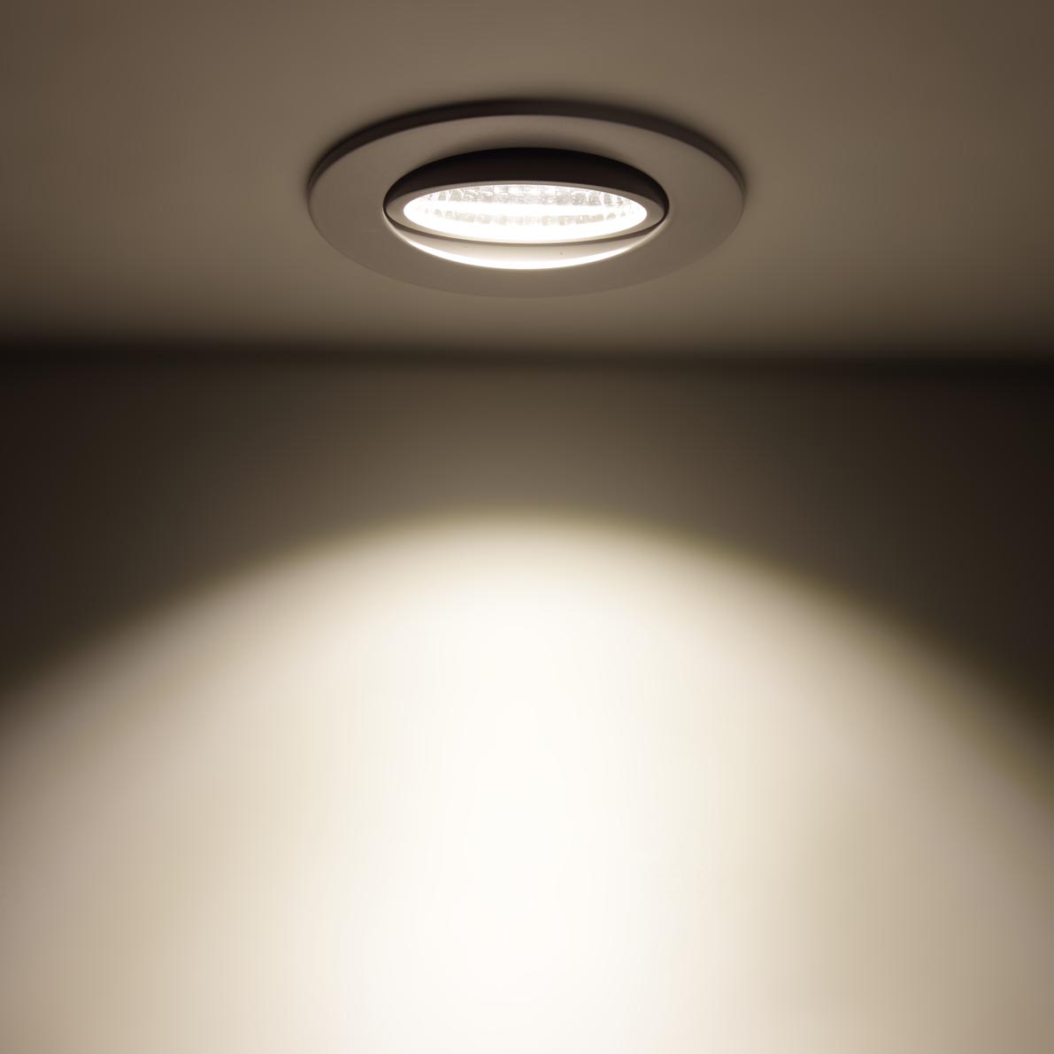 Потолочный поворотный светодиодный светильник. Круглый белый корпус. Диаметр 85мм (под отверстие 75мм). Напряжение 85-265V, мощность 5W, цвет свечения дневной белый 4000-4500K, световой поток 500Lm, угол свечения 60 градусов.