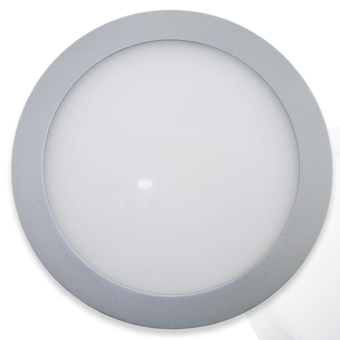 Потолочный светодиодный светильник. Круглый серебристый корпус. Тип светодиода 3528 - 150 штук. Напряжение 220V, мощность 15W, цвет свечения белый 6000-6500K, световой поток 900-950Lm, диаметр 240мм, коэффициент CRI>80.