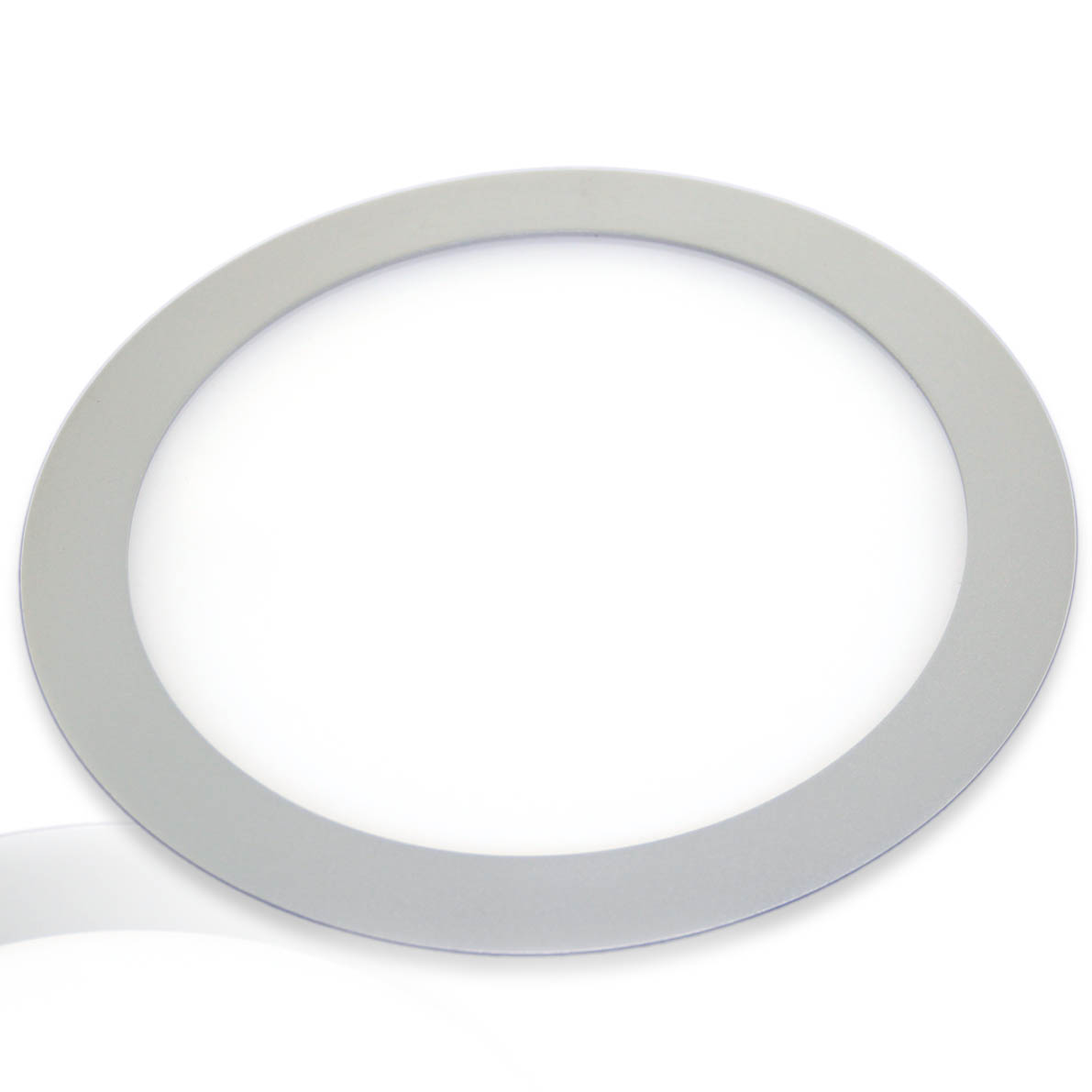 Потолочный светодиодный светильник. Круглый серебряный корпус. Тип светодиода 3528 - 150 штук. Напряжение 220V, мощность 15W, цвет свечения белый 6000-6500K, световой поток 900-950Lm, диаметр 240мм, коэффициент CRI>80.