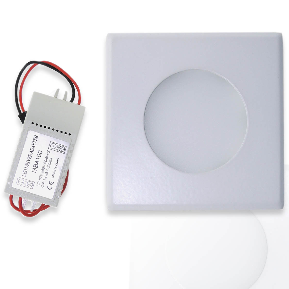Потолочный светодиодный светильник. Корпус белый круг в квадрате. Напряжение 220V, мощность 6W, цвет свечения белый 6000-6500K, световой поток 310Lm, размеры 100x100мм, коэффициент CRI>80.