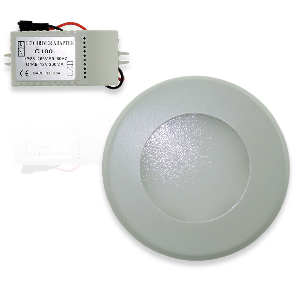 Потолочный светодиодный светильник. Круглый белый корпус. Напряжение 220V, мощность 7W, цвет свечения теплый белый 3000-3200K, световой поток 450Lm, диаметр 100мм, коэффициент CRI>80.