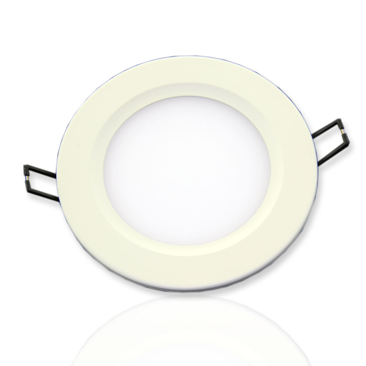 Ультратонкий светодиодный светильник. Тип светодиода NICHIA, с возможностью диммирования, керамический белый корпус, круглый диаметром 140мм ( под отверстие 125мм). Напряжение 220V, мощность 5,5W, цвет свечения теплый белый 3200K, световой поток 270Lm, коэффициент CRI>80.