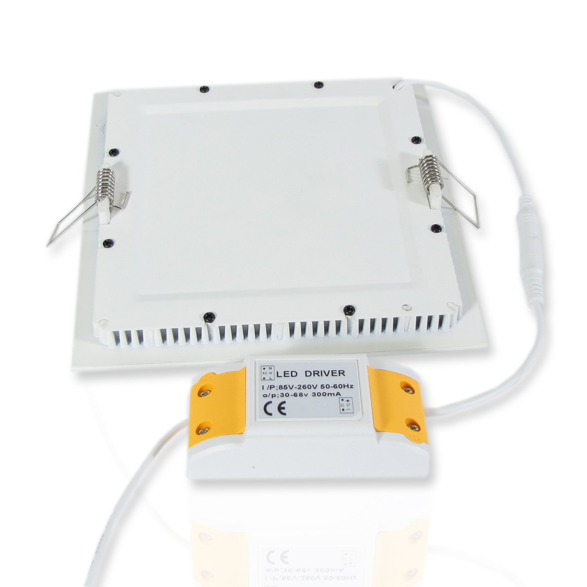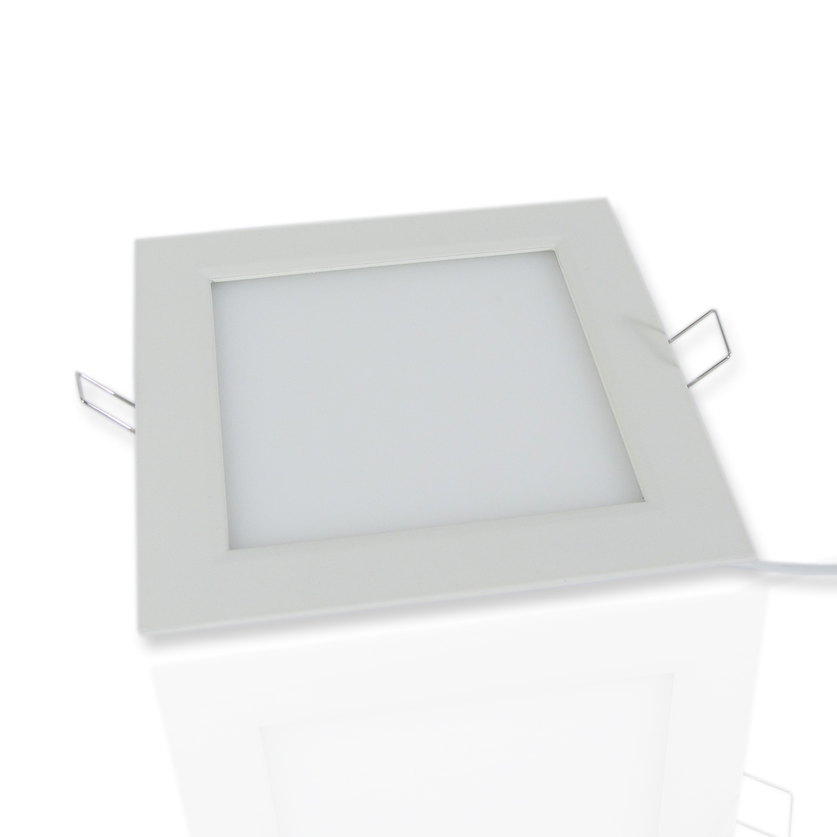 Потолочный светодиодный светильник. Корпус белый квадрат. Напряжение 220V, мощность 11W, цвет свечения белый 6000-6500K, световой поток 650-680Lm, коэффициент CRI>80. Размеры 180x180мм. Посадочное место 172x160мм.