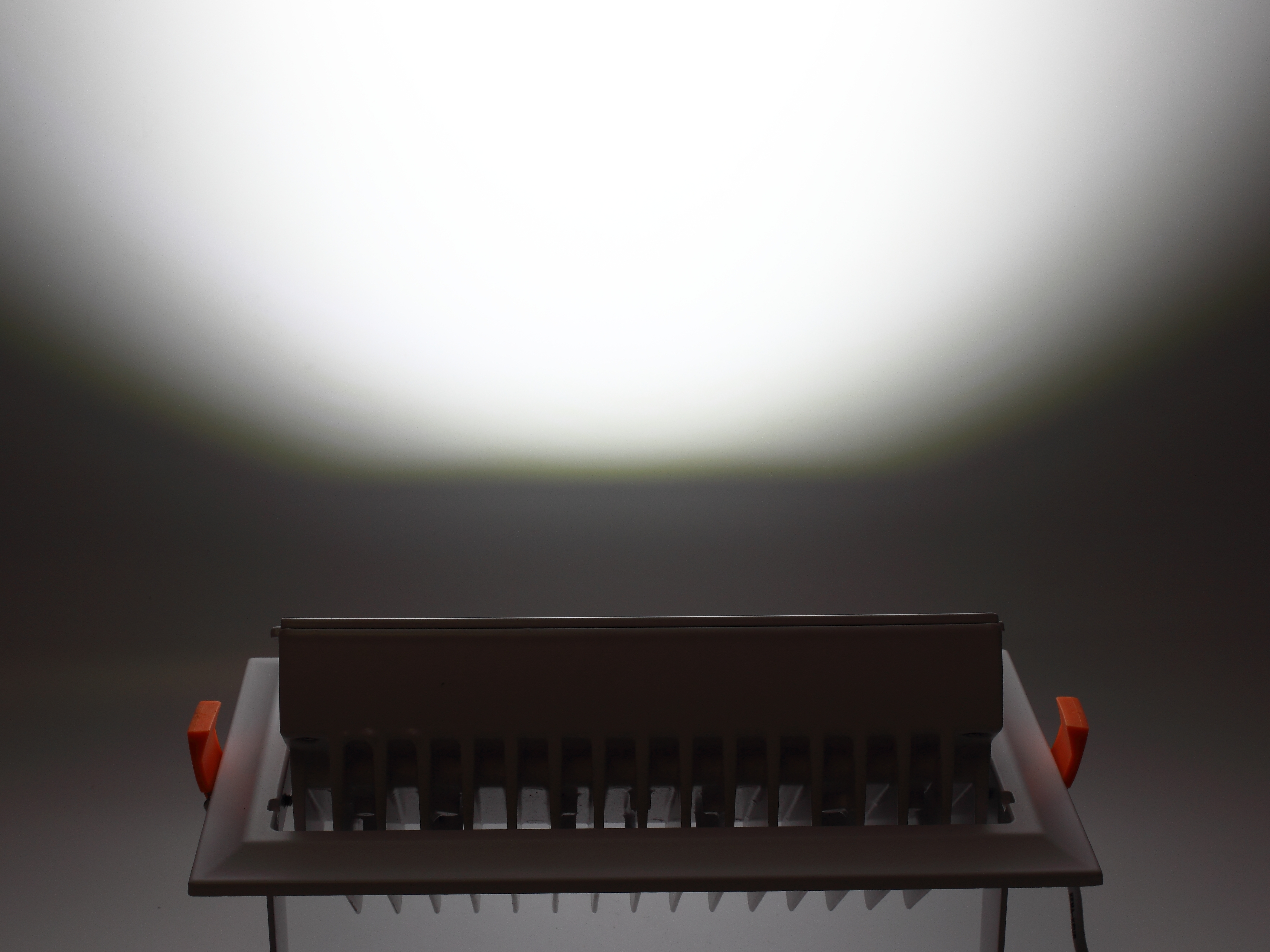 Светодиодный светильник встраиваемый с изменяемым направлением освещения. Белый корпус. Напряжение 85-265V, мощность 40W, цвет свечения белый 6000K. Световой поток 4000Lm, угол свечения 45 градусов. Размеры 250х150х105мм. Установочные размеры 235х125х100мм. Вес 1600г. Драйвер 30-36В, 1200мА.