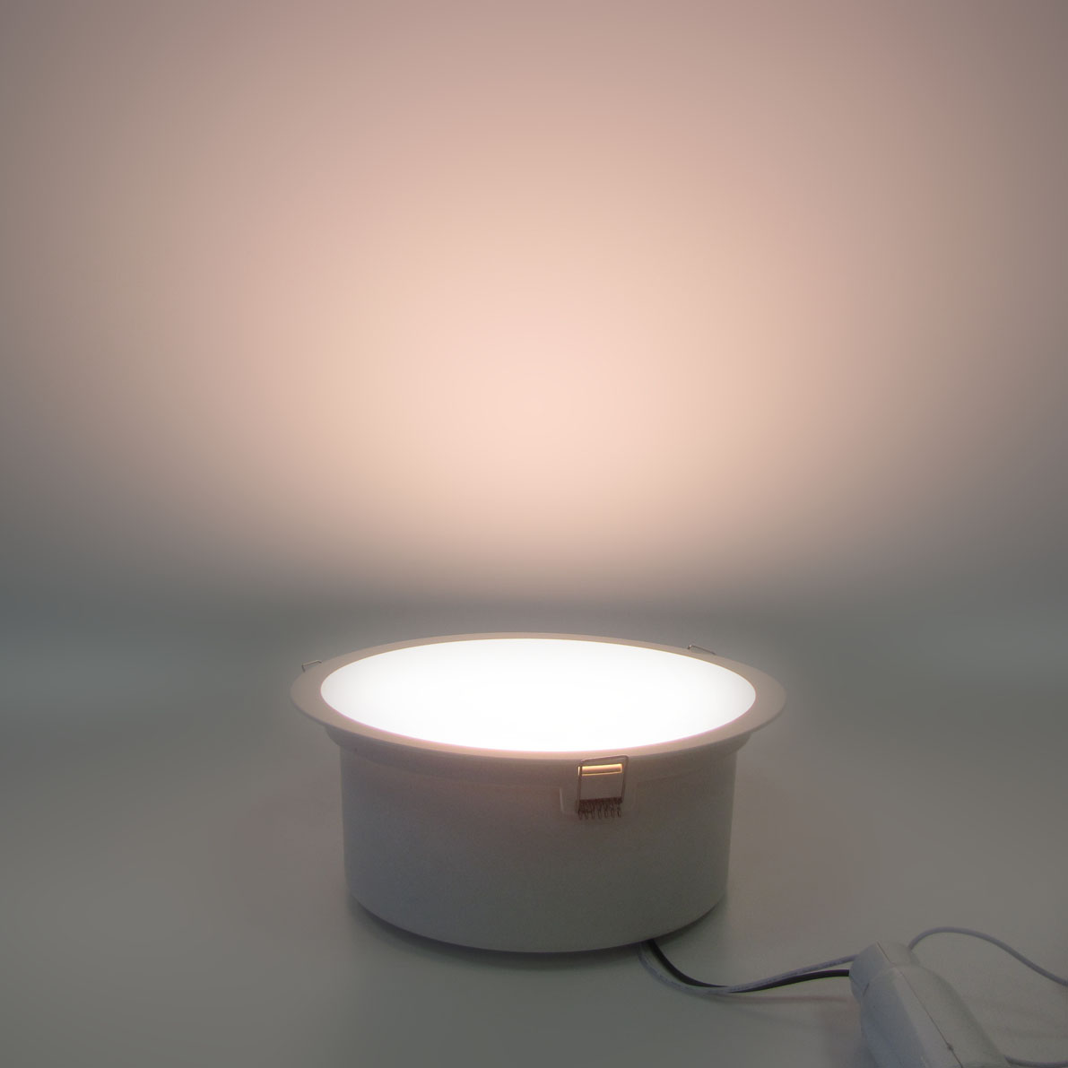 Потолочный светодиодный светильник. С возможностью диммирования. COB технология. Напряжение 220V, мощность 20W, цвет свечения теплый белый 2800K, световой поток 1900Lm, коэффициент CRI>85. Размеры: Ф235х100мм.