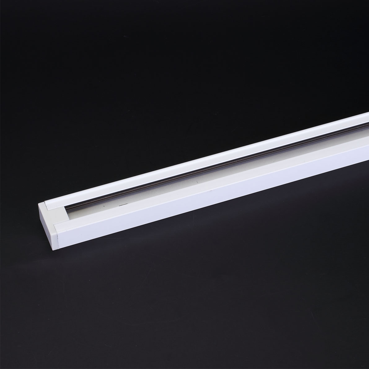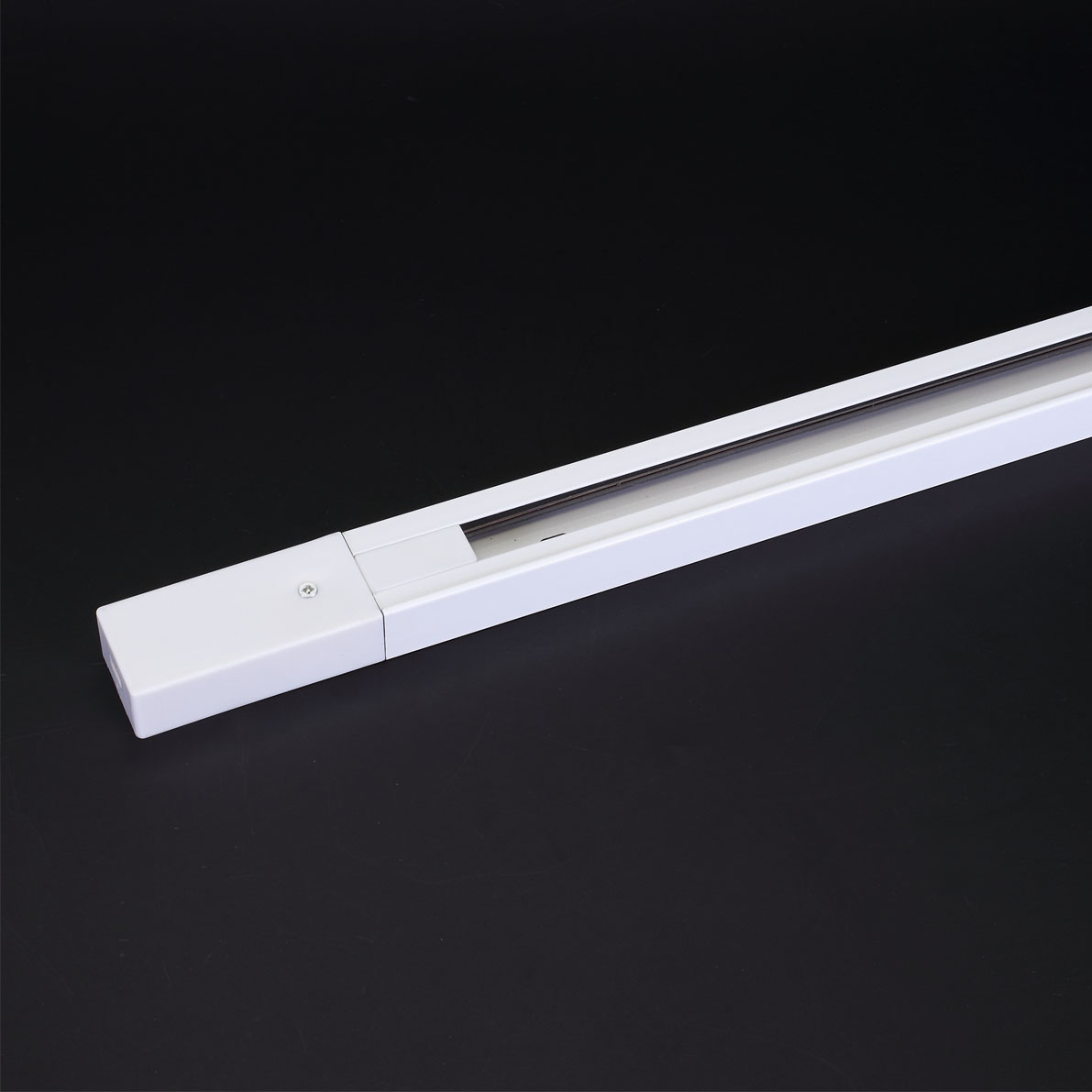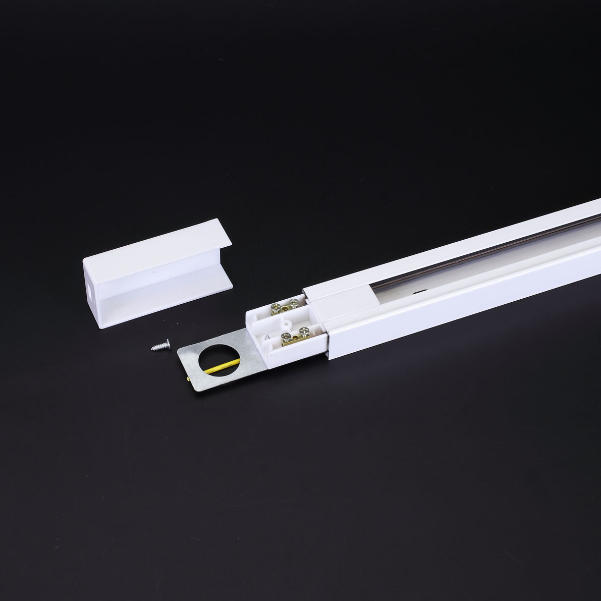 Трек для спотов. Корпус белый. Однофазный, два провода (фаза, ноль), корпус трека заземляется. Размеры 2000х35х20мм. Вес 550г.