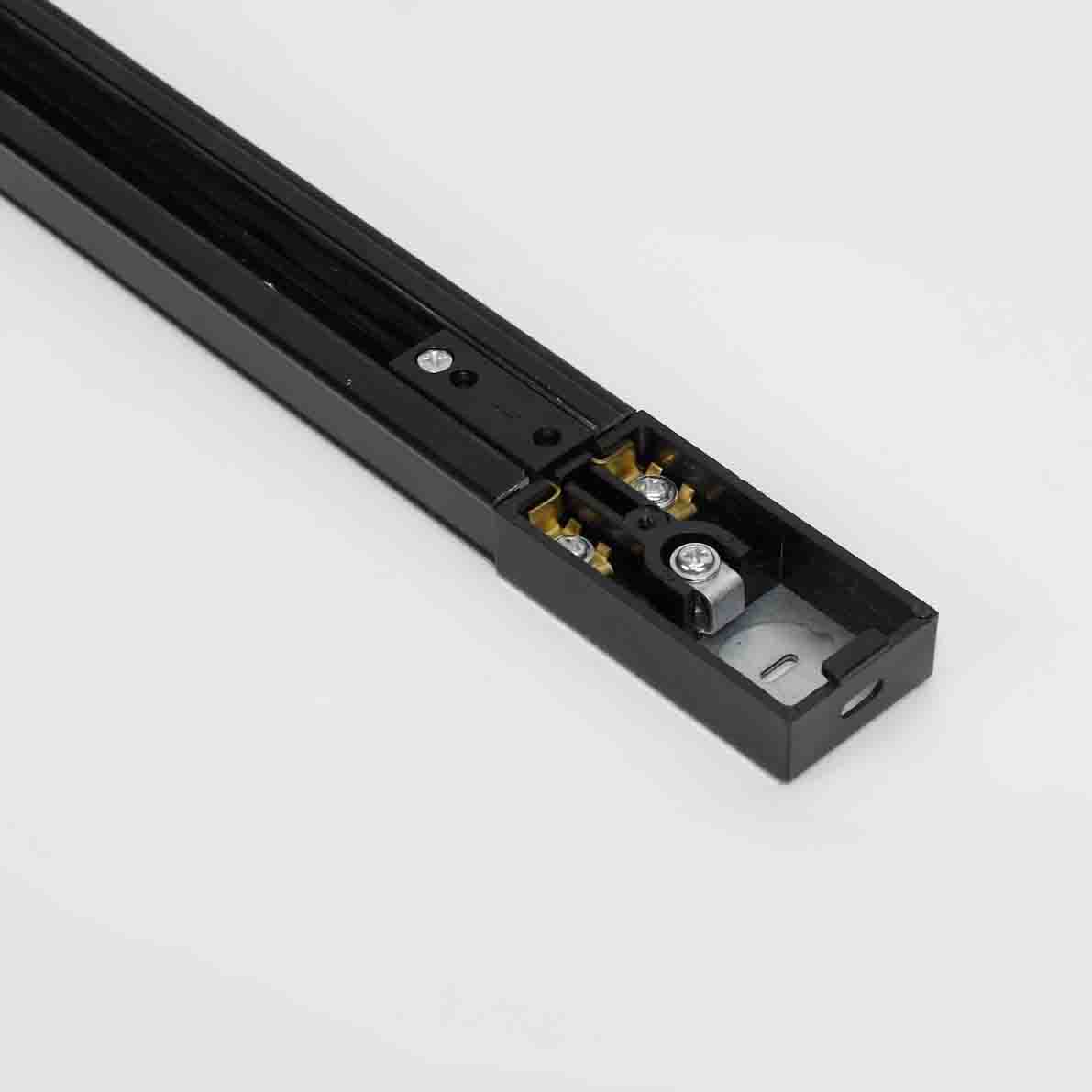 Трек для спотов. Корпус черный. Однофазный Евро" три провода (фаза, ноль, земля). Более жесткая конструкция по сравнению с двухпроводным треком. Заземление не только трека, но и самого светильника. Размеры 1500х35х17мм. Вес 630гр."