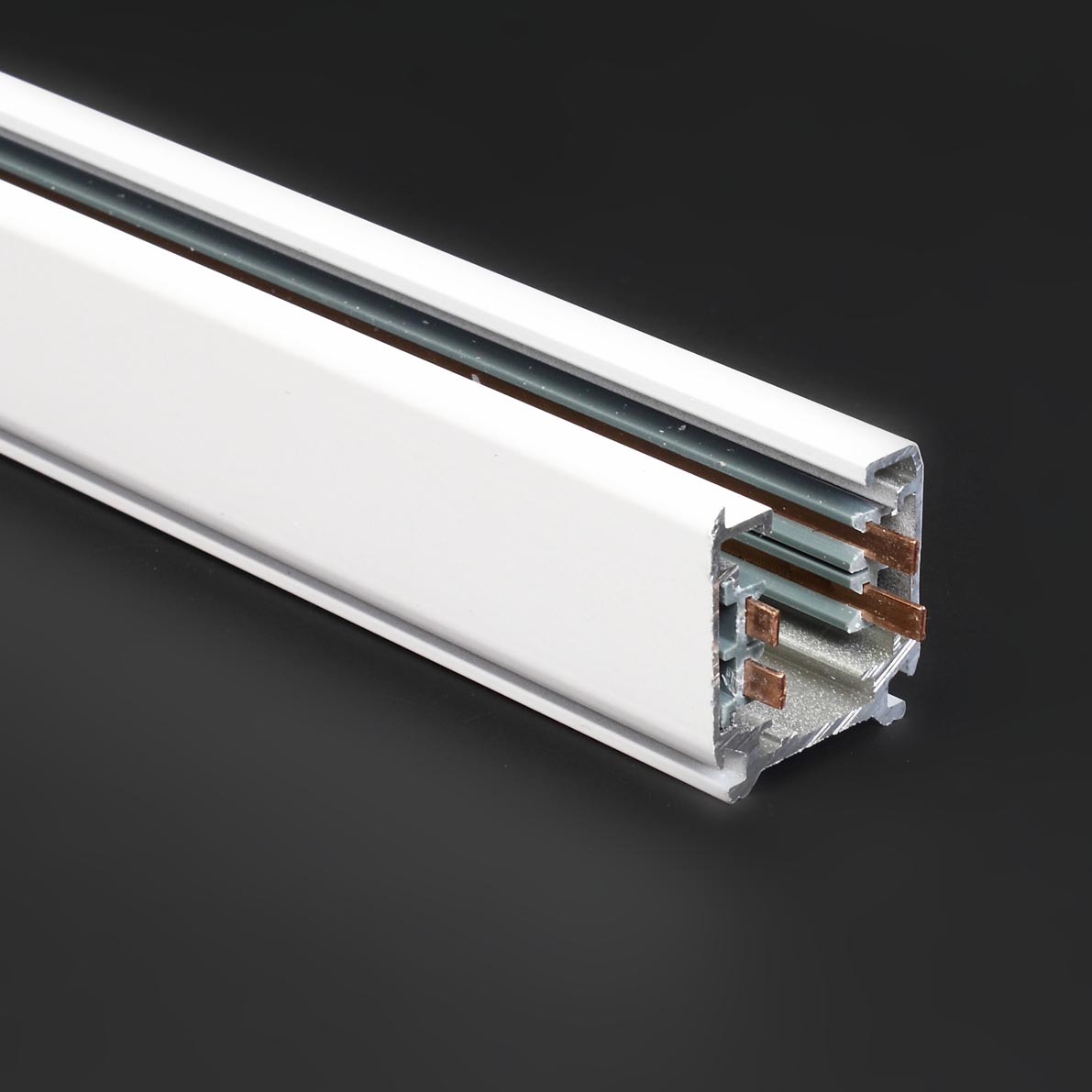 Трек для спотов ''трехфазный'', четыре провода. Корпус белый. Заземление трека и светильника. Возможность подключения до трех групп светильников на одном трековом шинопроводе. Размеры 2000х32,5х36мм. Вес 1600г.