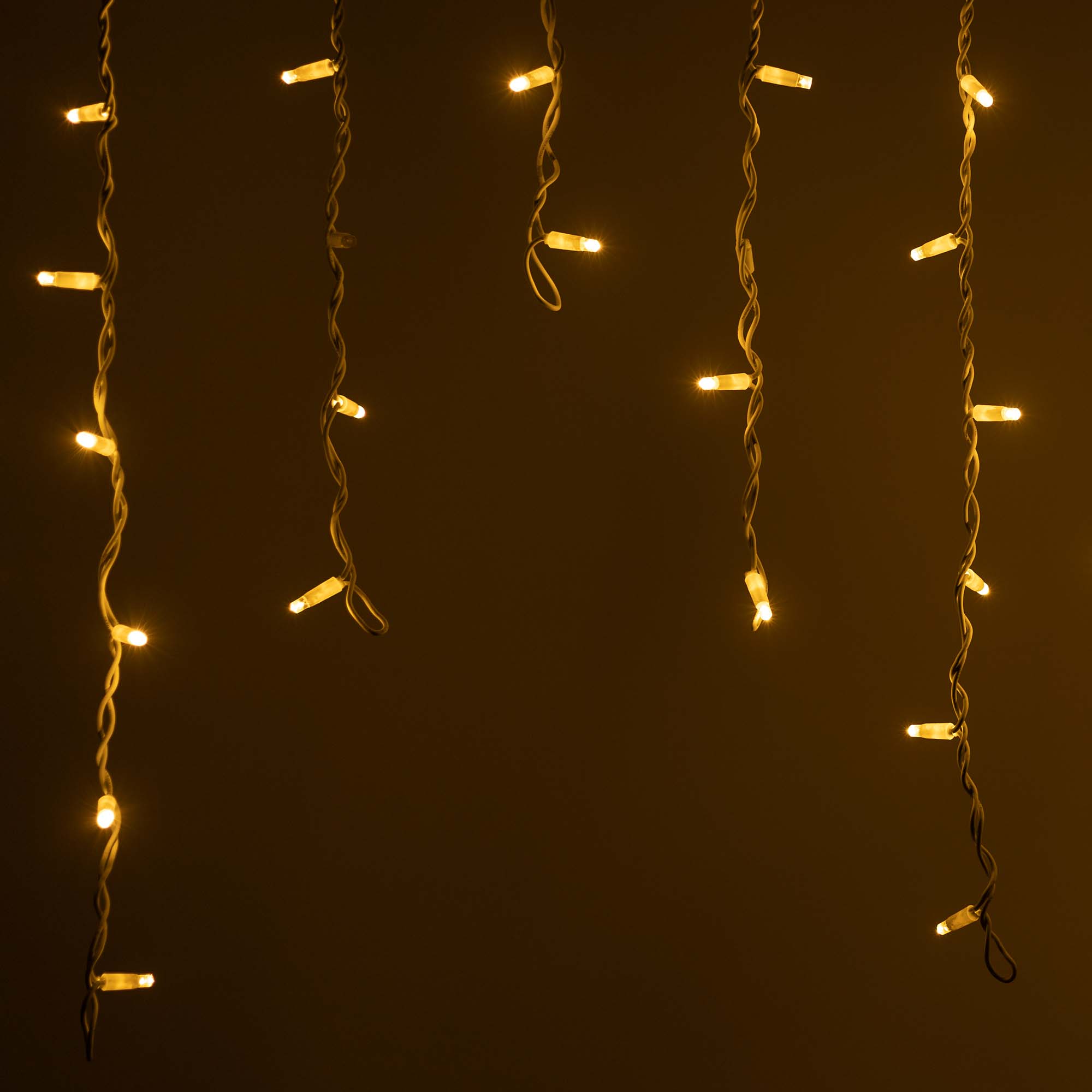 Светодиодная бахрома Pro. Размер 4000 мм (длина 4000 мм, по длине 32 нити высотой 200/600 мм). Количество светодиодов 128 шт размером 7 мм. Основной цвет свечения ТЕПЛЫЙ БЕЛЫЙ (3000 К), эффект мерцания редких точек ТЕПЛЫЙ БЕЛЫЙ (3000К) с резким световым рисунком (прозрачная вогнутая линза), соотношение светодиодов: 106 теплых постоянного свечения / 22 теплых с мерцанием. Эффект частого мерцания. Провод белый, каучук. Питание 230 В, Мощность 6 Вт, защита IP65, применение на улице под навесом. Аксессуары для подключения приобретаются отдельно.