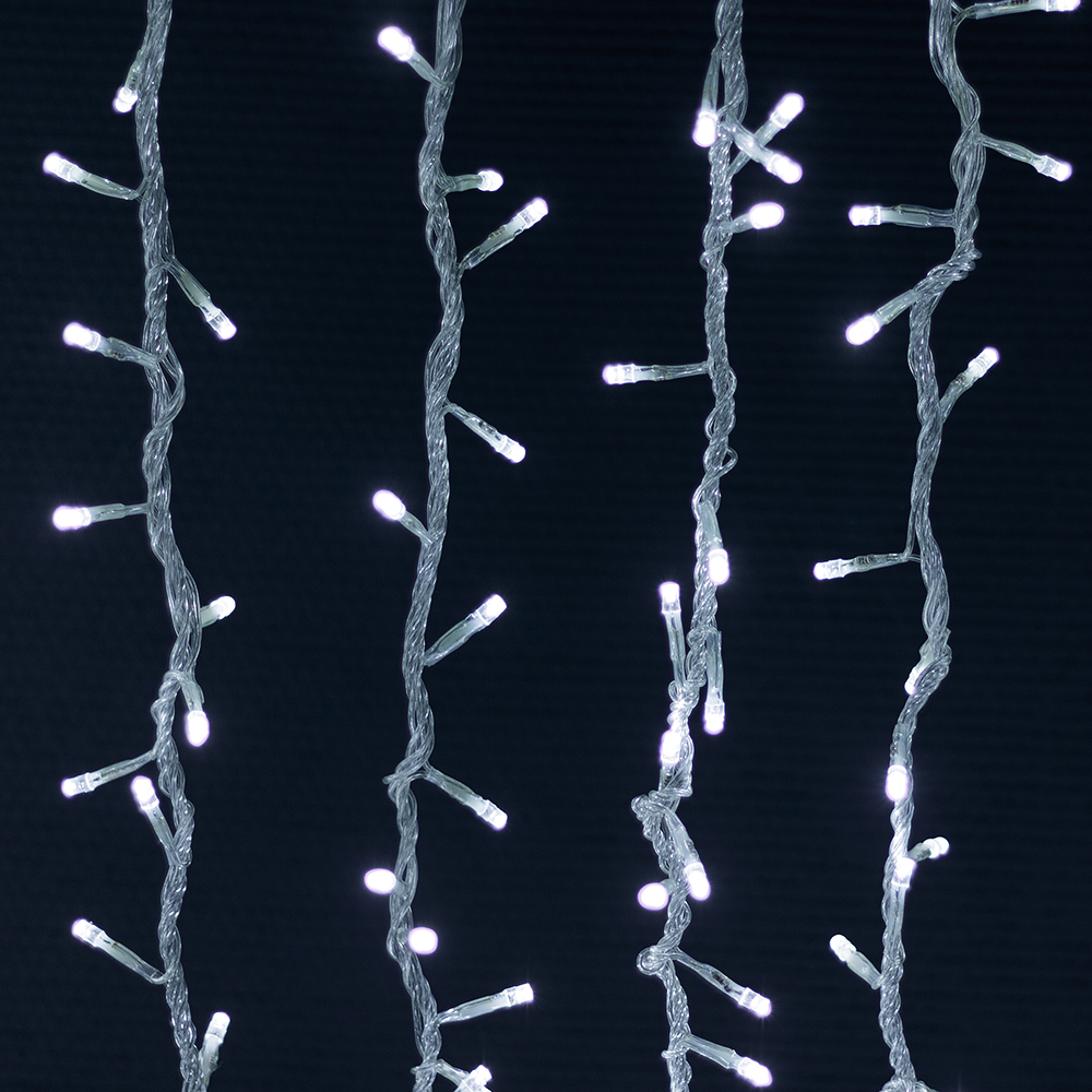 Светодиодная герметичная IP65 гирлянда "ВОДОПАД", БЕЛАЯ холодная. Длина 3000мм, высота 2000мм, 3200шт светодиодов. Питание 230В, мощность --Вт.Прозрачный провод с евровилкой.
